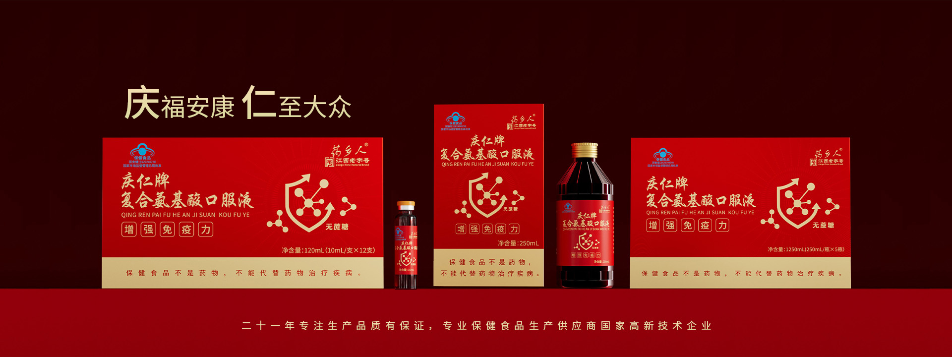 江西樟樹市慶仁保健品有限公司成立于2004年1月18號(hào),注冊(cè)資金2600萬(wàn)元,是一家專業(yè)致力于保健食品和營(yíng)養(yǎng)食品研發(fā)、生產(chǎn)、銷售為一體的現(xiàn)代企業(yè)。公司現(xiàn)有保健品批文:藥鄉(xiāng)人牌黃芪當(dāng)歸阿膠口服液。慶仁牌蛋白質(zhì)粉,慶仁牌鈣鐵氨基酸口服液、慶仁牌牦牛骨茯苓山藥核桃維D顆粒、阿膠枸杞顆粒、復(fù)合氨基酸、西洋參淫羊霍酒、慶仁牌鹿茸人參酒、慶仁牌鈣維生素D咀嚼片、慶仁牌葡萄糖酸鋅口服液、葡萄糖鈣口服液、硒口服液,硒片等自有批文二十二個(gè),正在申報(bào)的保健品批文十六個(gè),同時(shí)擁有普通食品生產(chǎn)線、固體飲料其他飲料、配置酒、壓片糖、消殺劑生產(chǎn)線。我們的專業(yè)品質(zhì)保證...